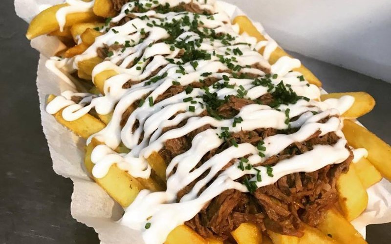 500GR Papas fritas, 160GR de carne, 100GR Chorizo, 90GR Cebolla Blanca, Huevo.